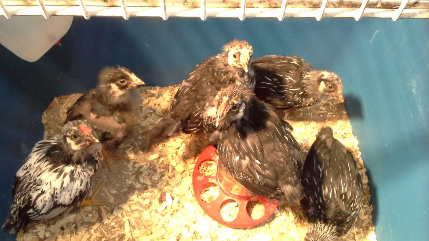 OMG add me to the month-old-SLW crowd!! Have GOT to compare pics with you guys. Mine are confusing me bad. And I also have one freak thus not feathering at all like the others, lol. Black band? In my experience, the Roos have more silver around their neck than the girls.. At least what I've seen anyway.@RoboDuck here's some pics of my SLW's. They are about a month old now. One chick has yet to feather out yet, 4 of them are black with white stripes on the feathers, and one has lots of white. The one with all the white has the largest reddest comb. I'm hopeful I have 1 male & at least 4 females.These aren't the best pics, but y'all tell me what you think so far...