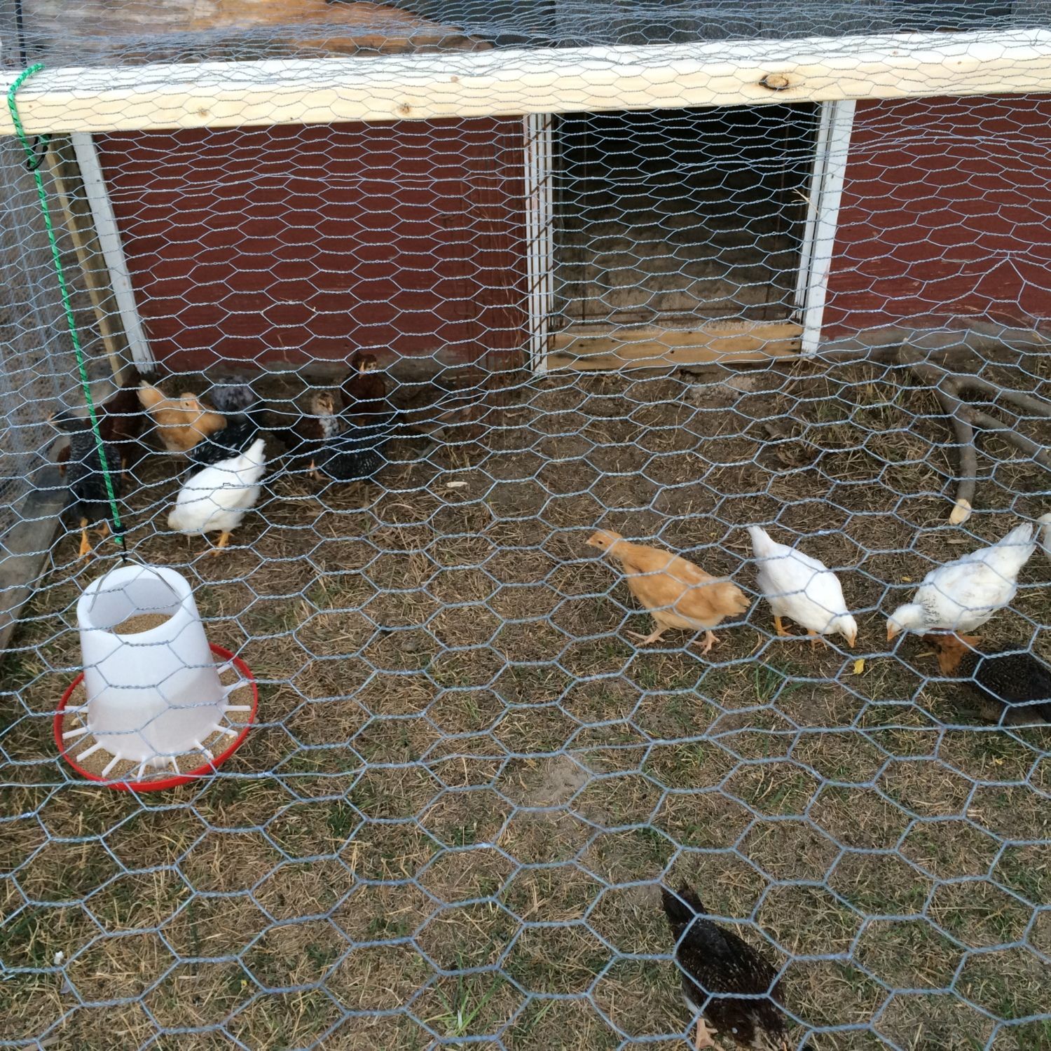 They are almost 7 weeks old(Sunday) and we put them in a grow out pen about a week ago when we have to go to NJ to deal with our rental property there.