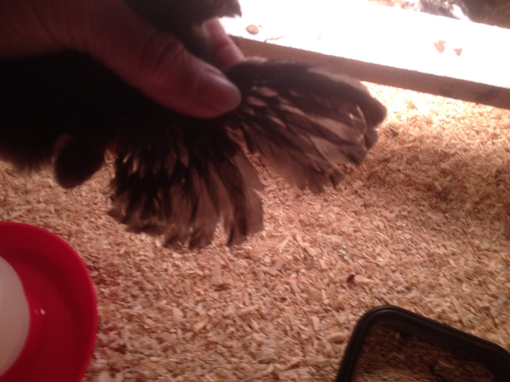 4 weeks old is too late to see the darker red coloring on female RIR heads, so go on to the wings. I have found that on MOST chicken breeds (not all), you can tell a boy from the girl by looking at the shape of the wings.Boys have different feathers that betray them.