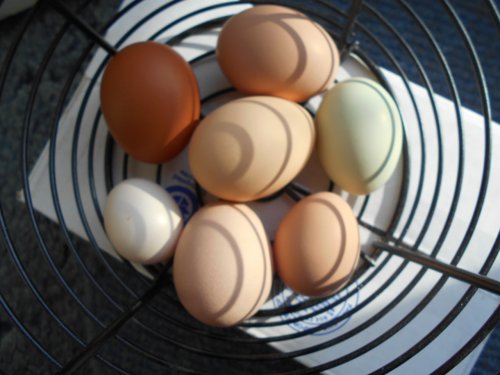 Nice! Don't you just love them! I've had chickens for 2 1/2 years now and I still go to bed excited about waking up to see what my chickens will lay the next day!This is today's egg haul. Tiny white Silkie egg and a tiny cream egg (not sure who lay that one).