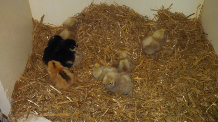 They made it through the cold last night with the mamas in the coop. It was 13 degrees outside this morning here. I think it was 20 in the large coop where the chicks and mamas are staying. I hope they keep doing good in all this cold. No I didn't use any heat other than chicken heat.![]()