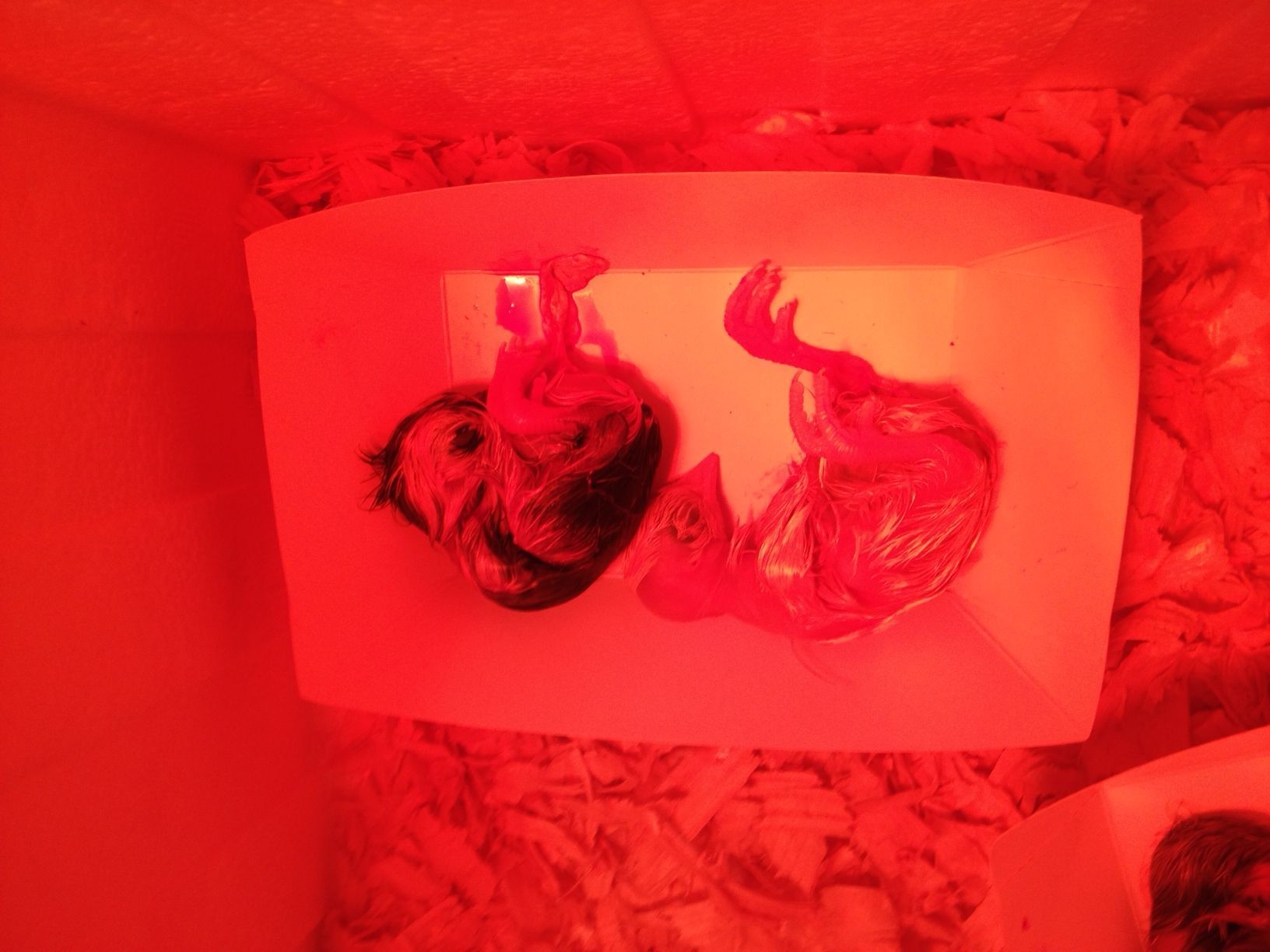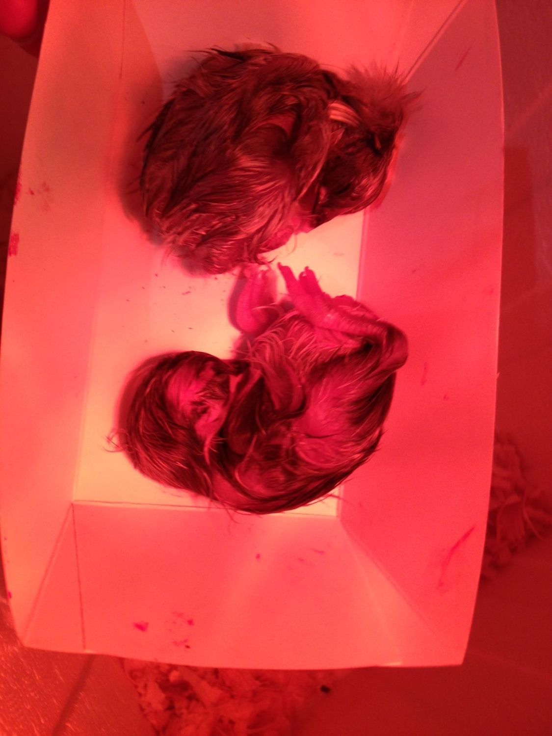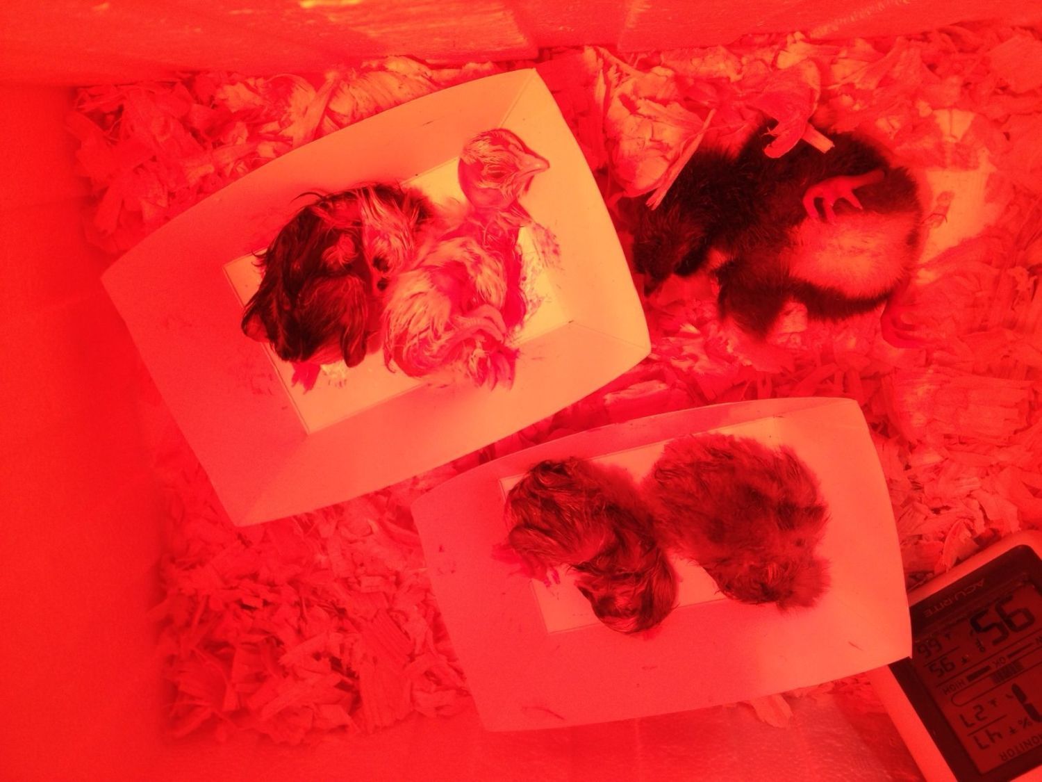 Got home! The BLRW HATCHED!! Just the one though. It's still in the bator drying. But here are a couple pics of the other five. Try are darling and doing great. And I cannot get OVER the difference a week makes!! The week olds look like giants!