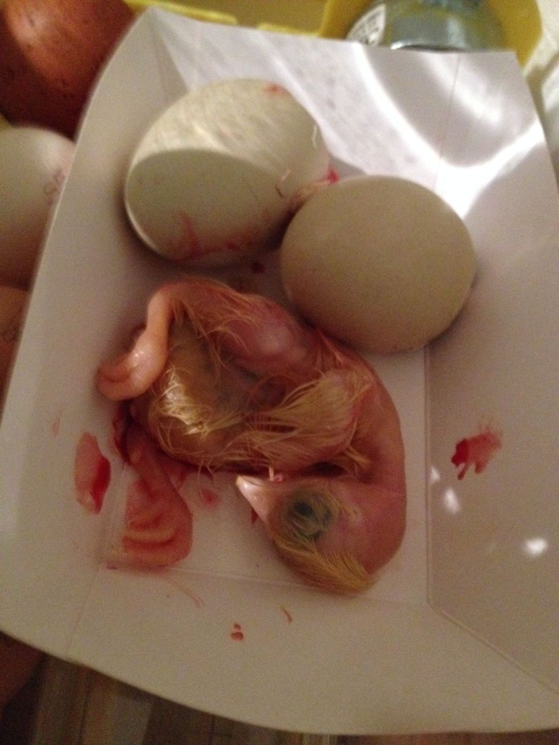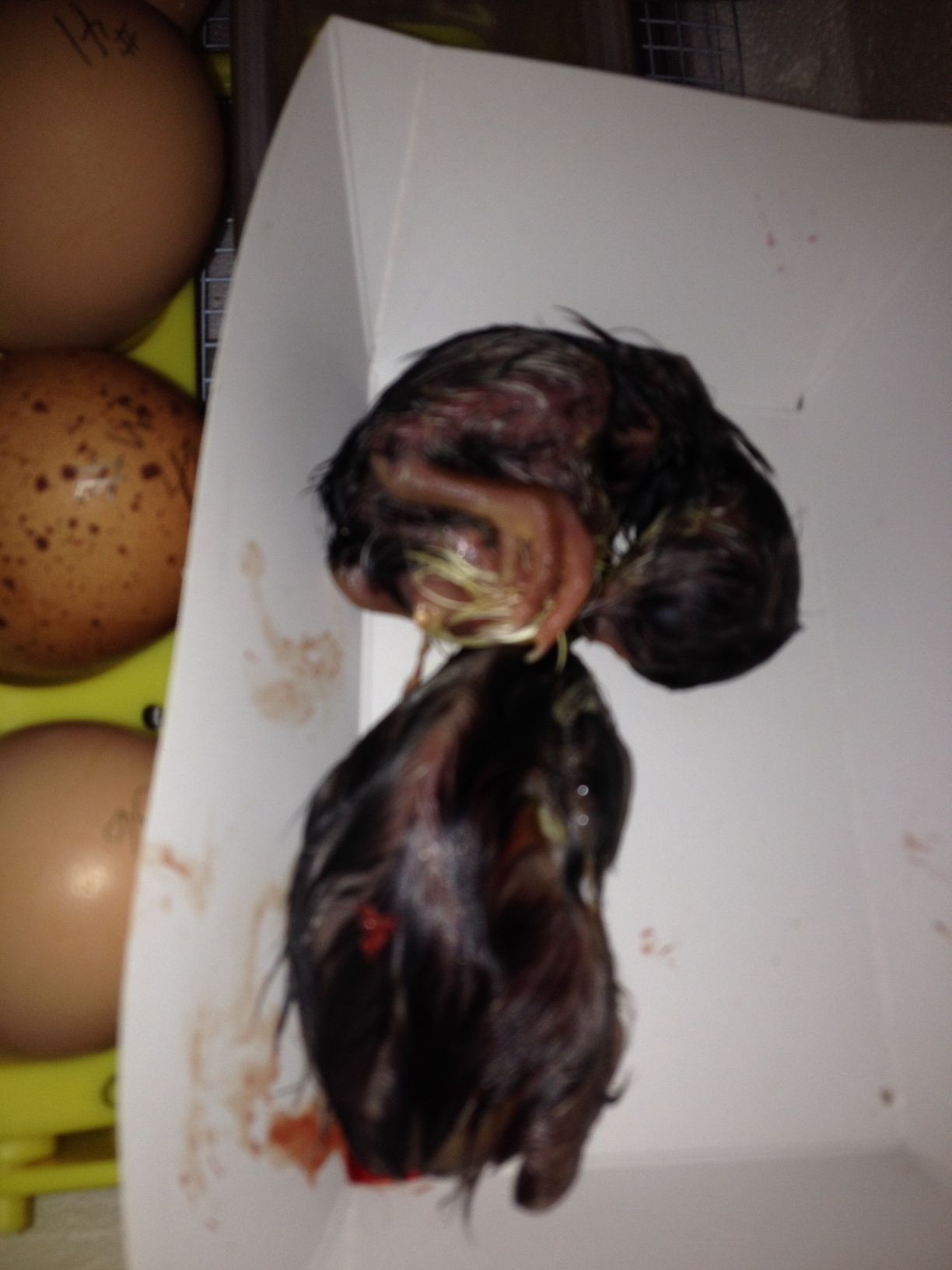 Crazy morning! Went down to check on chicks. Mamma had the two babies eating in the corner and I got a look at the hatching eggs! Most of them had pips, but they were really cold! I could hear them inside the eggs. There was also one other fully feathered dry chick there. It was dead. I know when hens hatch eggs they have to decide when to leave unhatched eggs to take care of the ones they hatched. These first chicks are now 3 days old, so I imagine she choose to take care of them. I grabbed the remaining eggs and poked holes in the area where they were pipping! Alive! Except for one. Of those 9 remaining eggs under her, two were not fertile (or early deaths), one died in the shell and the dead chick we found under her. Soooo, I have 5 fighting for their lives! They are in the critical care unit here at Bear Ridge Lodge! But, they are chirping as they lay there getting warmer! And, one is from my Frizzled Naked Neck! Can you spot it?! LOL! Keep fingers crossed! It's really hard to keep them alive once you have to help them hatch. But, we will see!