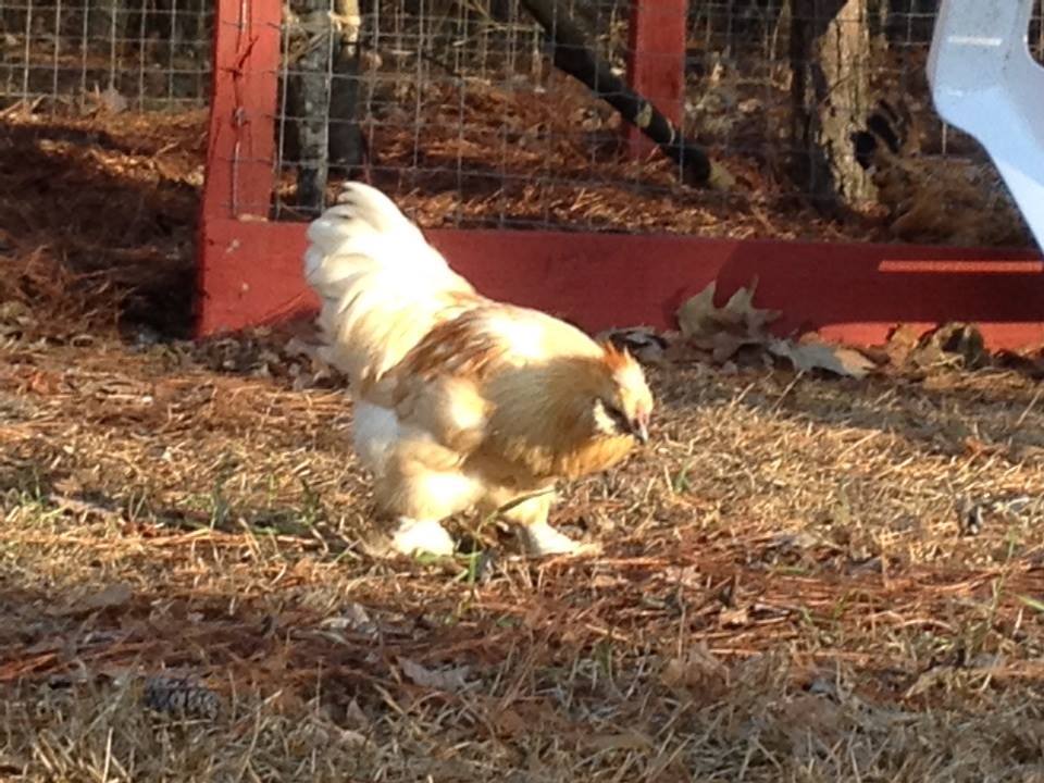 Just this guy now. I had 2 showgirl roosters, 1 turken rooster, and 1 porcelain d'uccle X silkie. The turken is gone sunday and i originally gave away both showgirls but ended up getting one back to be a breeding roo to replace the turken. I'll have 6 hens and 1 roo after i find a home for this little one.