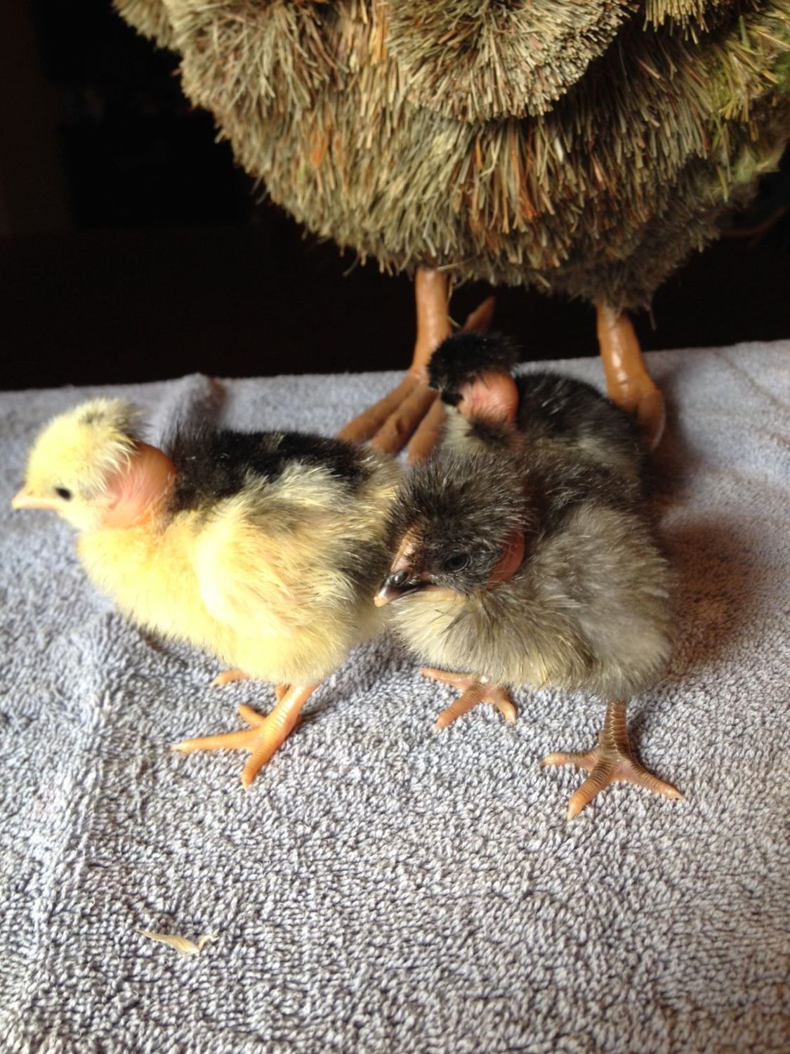 The little white and black one is from my Frizzled blue egg layer Naked Neck, Electra!
