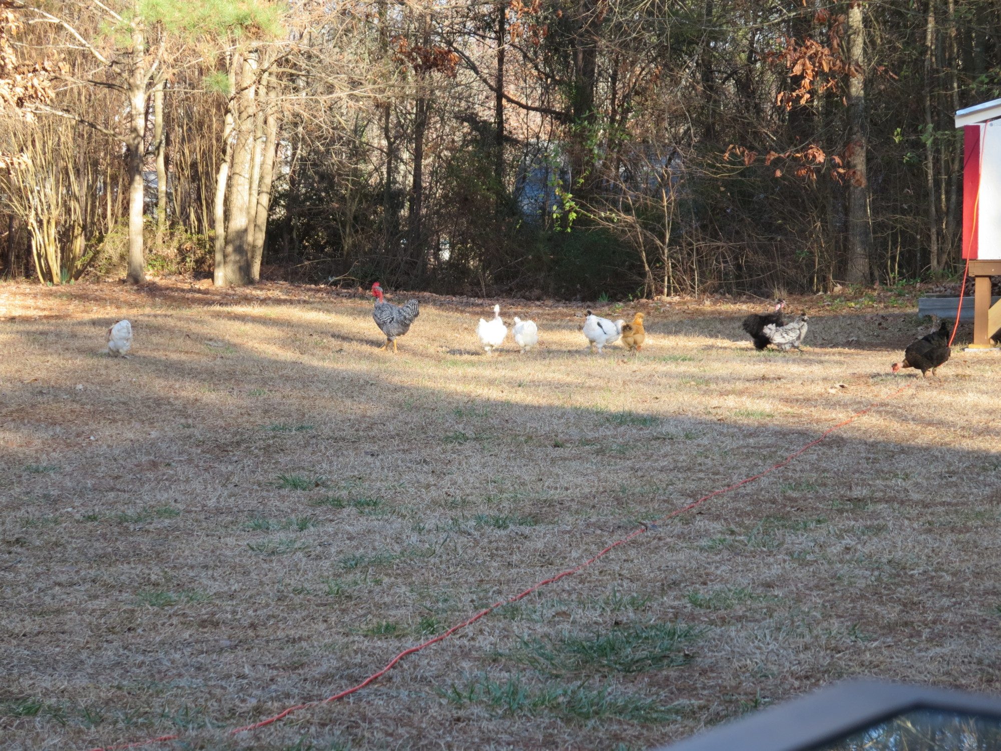 He is definitely a big boy. And a gorgeous one at that.I'm no expert on the breed. I did find a picture of a rooster that looks a lot like yours. I have posted the links below. The first link goes to the Ameraucana breeders club scrapbook. The second link is for the actual picture of a Silver Ameraucana (Large Fowl) http://www.ameraucana.org/scrapbook.html http://www.ameraucana.org/scrapbook_files/lfsilverm.JPG Edited to add another link about Ameraucanas. http://www.the-chicken-chick.com/2011/09/ameraucana-easter-egger-or-araucana.html She tells all about them. We have a Rooster that has the shape like your Ameraucana but he is not of the correct colors to meet qualification to be an Amercauna so he is an Easter Egger. He is a Big Boy and that is what we call him. Another reason our Big Boy is not qualified as an Ameraucana is because he has the wrong leg color. His legs are green.He is Gorgeous! Is he a Silver Ameraucana? Thank you. I love him.I'm not sure about him being a Silver Americauna. I rescued him and five other hens. 1 Leghorn, JG, 2other I am not sure if the breed. They guy told me a RIR![]()