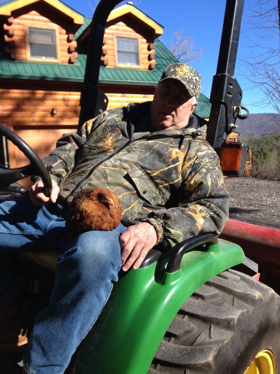 He also brings "Amy' in the house and sits her next to his computer on her own special perch and she has her own bowl of water and super scratch! Amy loves to try to catch the curser on the screen when he uses it. Now, I don't bring my chickens in the house. Just he does. So, all that stuff about us being crazy for our chickens and something is wrong with us.......well, I think he caught the 'disease'!!! LOL