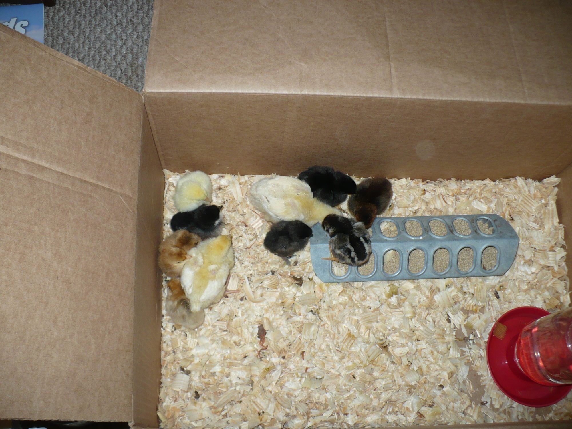 before the were put into their nice warm brooder, the two big ones are the pullets, they had Black Australorp I tried to get two, red star, wyndottes,all in one pin so who knows what I will end up with.