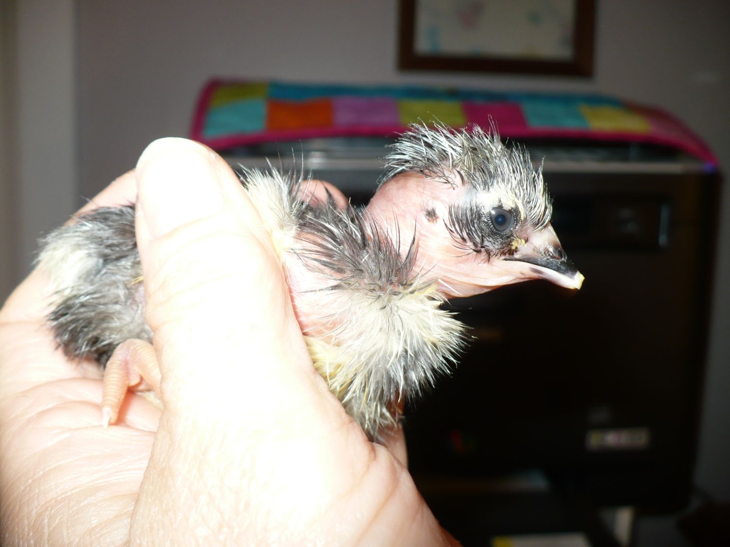 Peppercorn took one hard look at that strawberry, jumped as if startled, made this strange trilling cheep and fell backwards all over herself in her haste to get away and then ran all the way to the other side of the brooder peeping the whole way! I wish I'd had a camera!