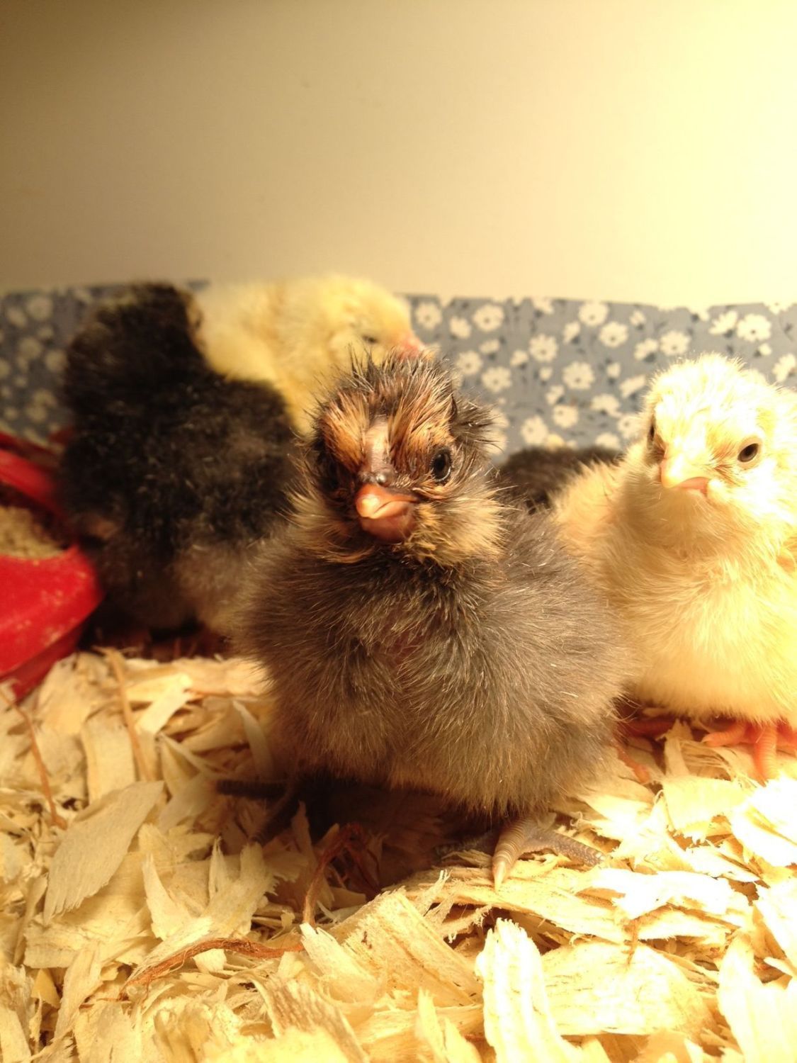 Okay finally got to take a couple pictures of my Wednesday after work field trip to TSC McDonough. These are 4 of the 6 (2 faded and went to chick heaven) these are strong and very active and yes I know the black skinned one is a silkie…any guesses about the other three..there should be a few Cochins?
