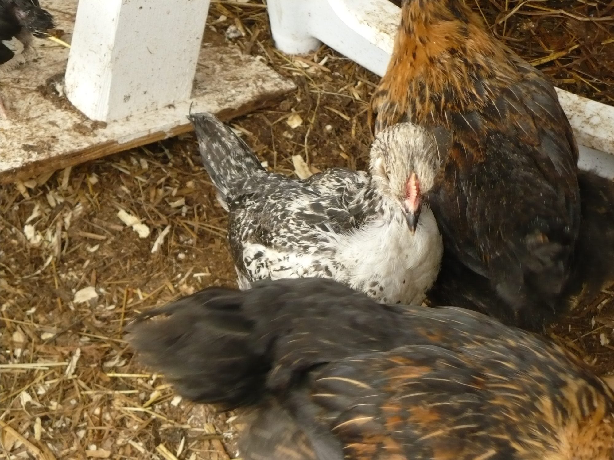 the white one here is one I bought from TSC and it was marked as a leghorn, wrong can we say broiler oh well, but you see the NN in the middle
