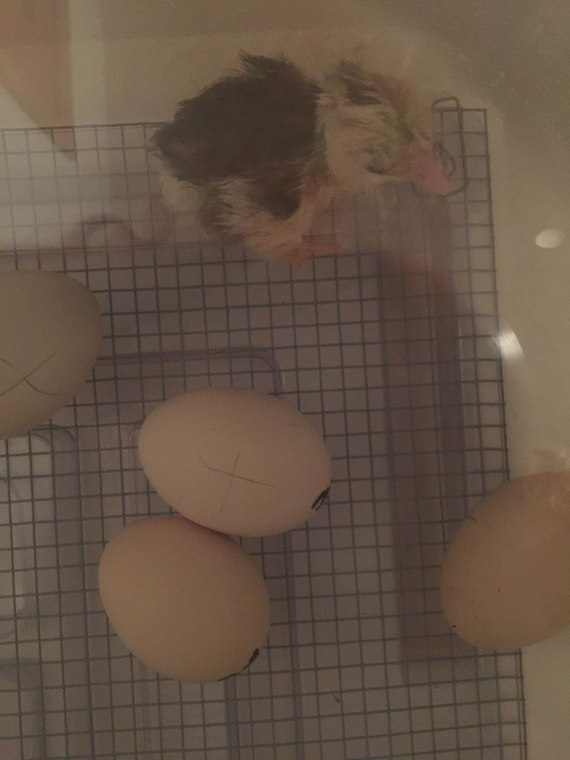 I have hatching. IN my incubator. Like-- actual hatching. Chicks, pips, zips..