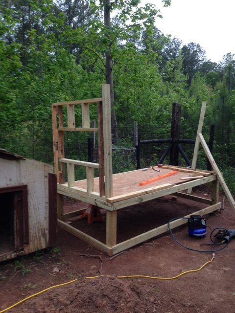 Floor joists went in today. The wall with the nest box is framed and temporarily in place. Yesterday, I was terrified of the framing nailer.