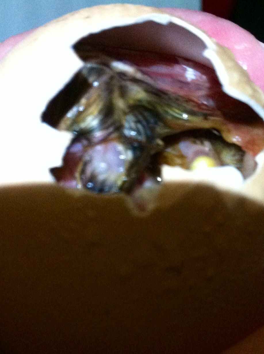 So I went ahead and assisted a little more on the straggler since I never advanced my pip but was peeping a lot. Here's what I first saw when I started.. I don't know if it's just stuck, or what? Anyway no cross beak or anything..