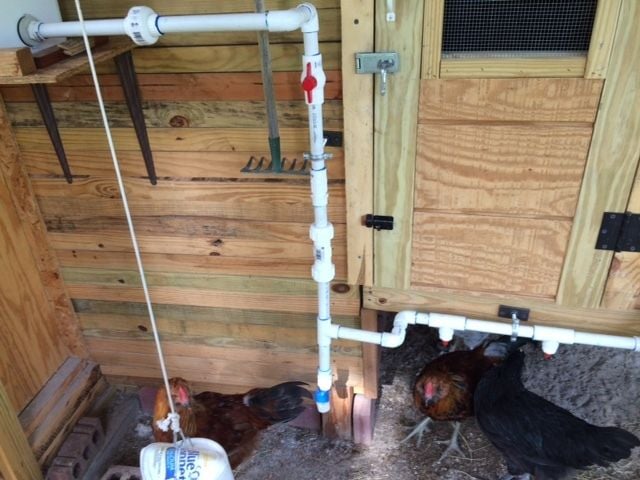 On the main line coming down from the bucket ( goes straight down) I put in a needle valve, that way if I need to drain water out of the line can open this, also giving some thought not sure if it can be done, of using it for a possible way if I can figure it out to recirc water, for winter to keep from freezing. The ball valve is after the union, and may change that, but below the valve I have a 3/4 in. compression fitting that also make it easy for disassembling. Thanks for the thought on the valve placement and union. Between the valve and compression fitting I also used a male and female adapter, again for ease should I need to make changes in the nipple height or disassemble of pipe, In addition, used 3/4 in. slip x thread tees for the nipples and drilled and tapped plugs that I can screw the nipples into and also then into the tees, so in addition to being able to disassemble the nipples for cleaning I can also unscrew them for replacement 0r to flush the line, felt it would be better then trying to unscrew the nipples. Thanks for the input and feedback, it is appreciated.