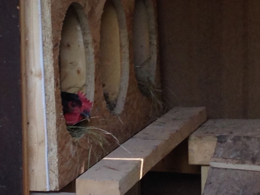 Went about my business, and went back down to the coop a bit later. Checking the run first, there were only 5 of the nine hens outside, so I opened the doors on the coop and looked in. One australorp on the floor, 3 chicken beaks sticking out of the nests. I eased inside to see who was where..........and got this pic: