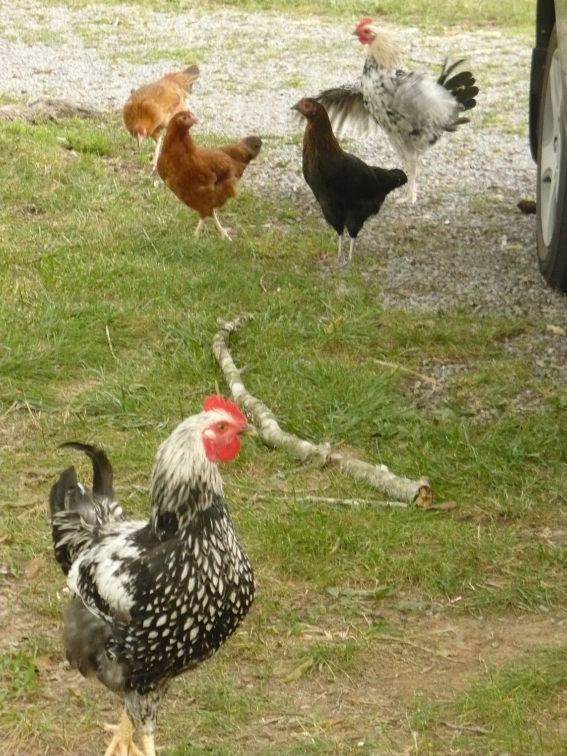 The Cochin Roo's name is Hewasashe, Cochins are Asiatic. Now some might wonder just how I came up with a name like that. You see I thought I had purchased all female chicks, I was incorrect. So that said lets take a look at the name in slow motion: He was a she or at least so I thought for a good while y'all know how that rolls.