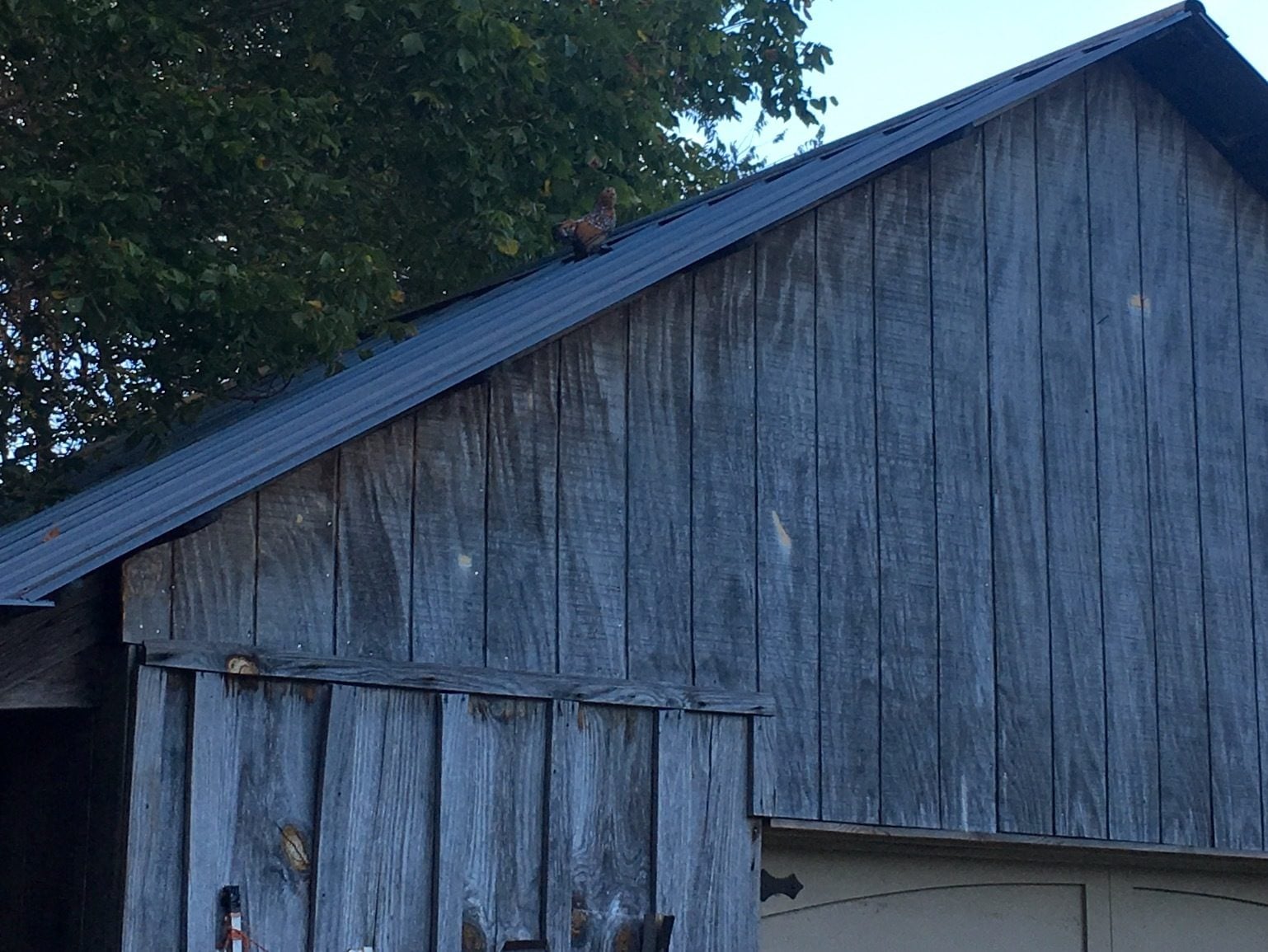 So THIS evening, one of my MFD flew up on top of our pole barn. Hubby said she "flew" up but I doubted him.. Until we all started trying to scare her off and she proceeded to FLY even higher up to the garage roof!![]()