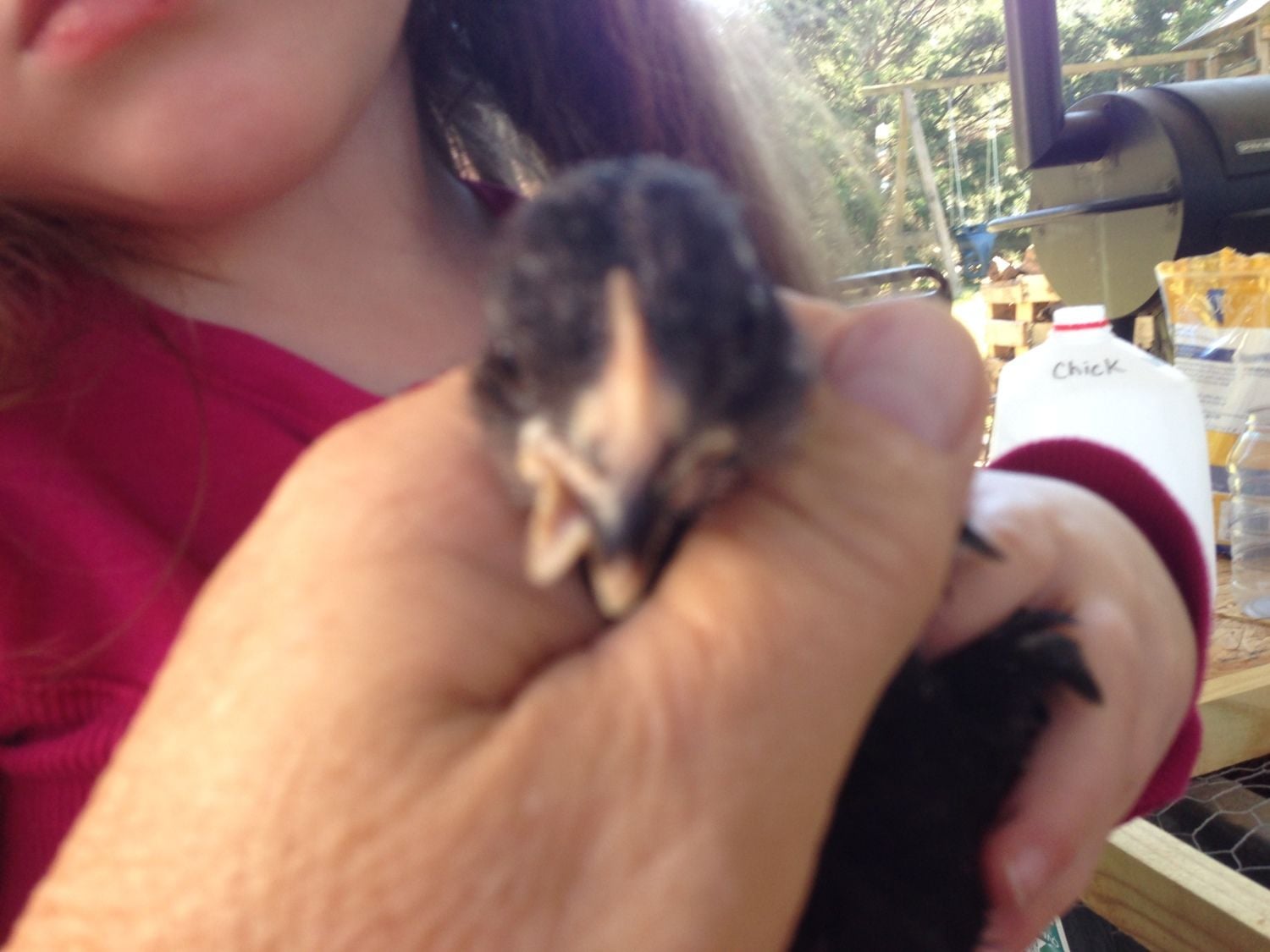 I have a question, I believe I'm going to have to put one of my babies down. I have no idea what happened to it, but it's lower jaw is crooked this morning. I'm wondering if it's jumped up and gotten caught in the wire or a crack or something. It wasn't like this yesterday, but today checking them it looks like it's bottom beak is broken. I tried pushing it back but it won't stay. here's a pic.....I can't imagine it can eat like this.