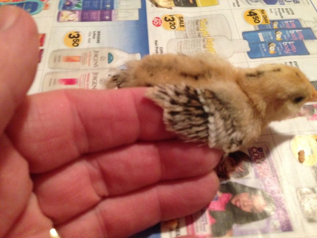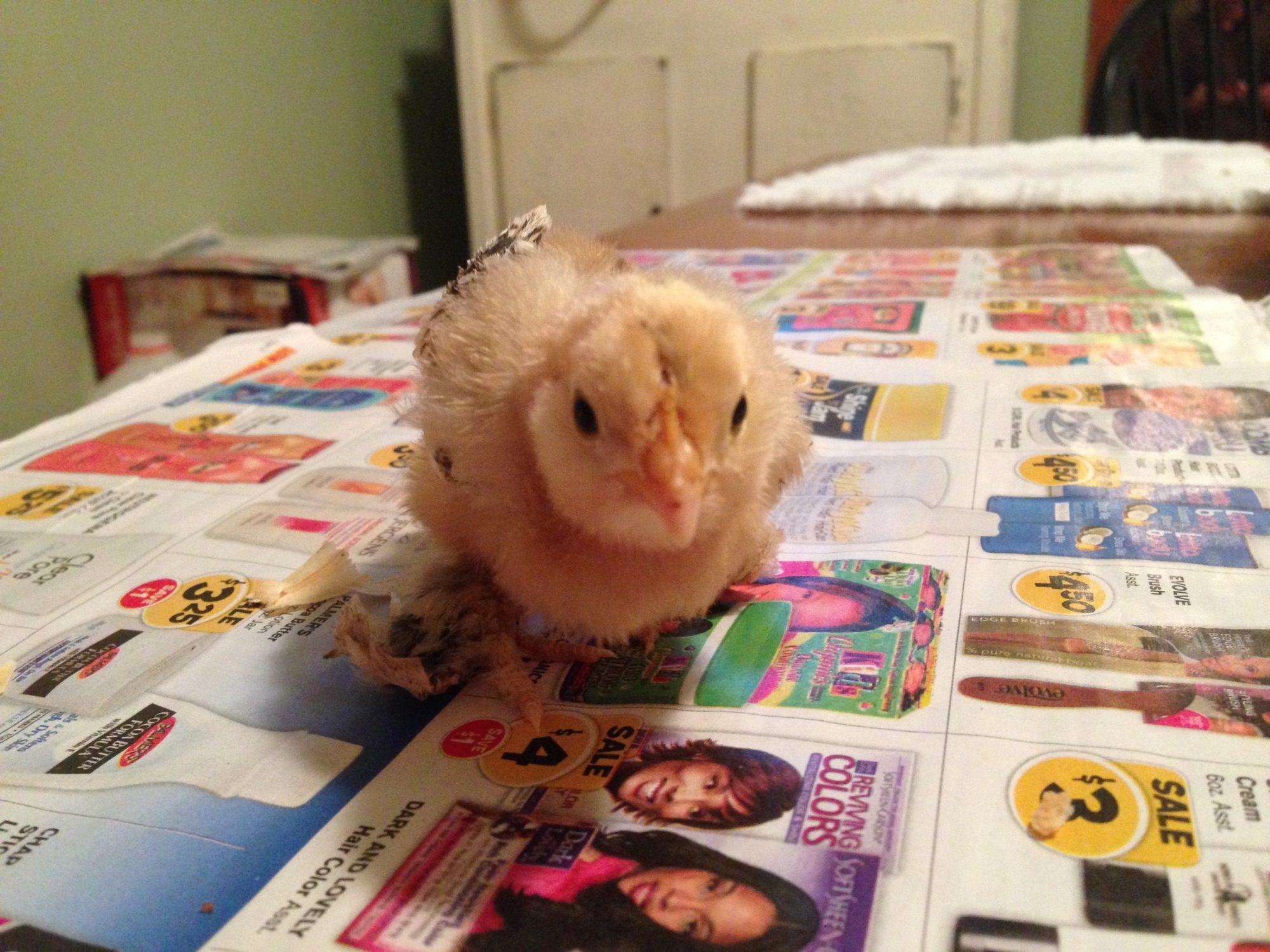 I have been given STRICT instructions that newspaper goes ON THE TABLE BEFORE THE CHICK DOES!!!Oh!!! Be STILL my heart!! I love when they are so tiny and already are already getting their honkin' vulture hocks![]()