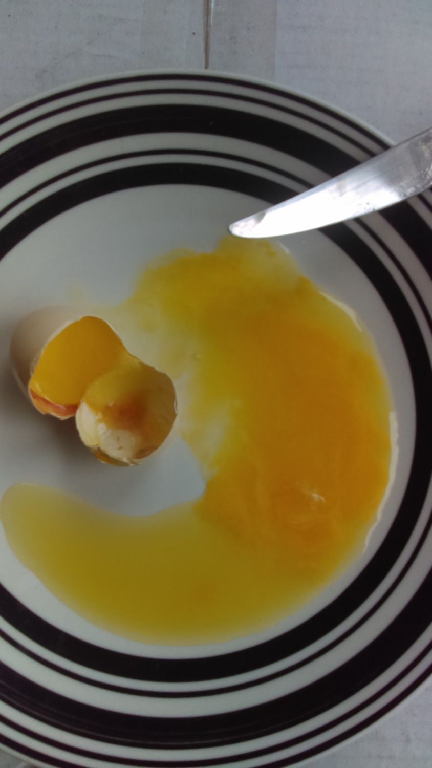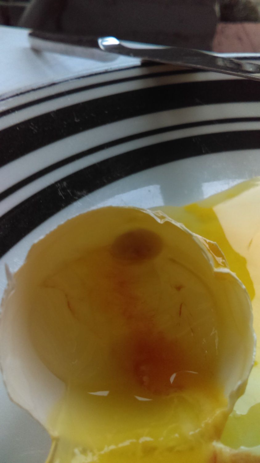 Messy yolk, just came out like this. It also had some white specks in it.
