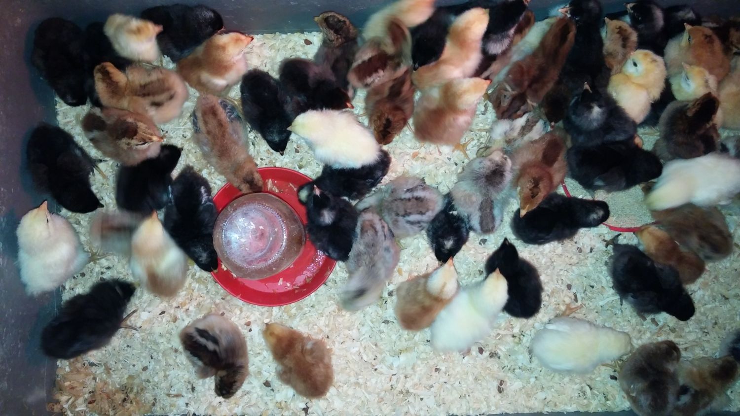 go ahead and try to count them, LOL the way they move around all the time you'd have to start with one cage and empty into a box, then move the rest from cage to cage and add em all up, LOL we have two out now, two more pipped. There's one that's looking cracked, or it could be part of a shell from one of the first two stuck on it, man when they first come out of the shell, they flop around like I used to back when I was drinking![]()