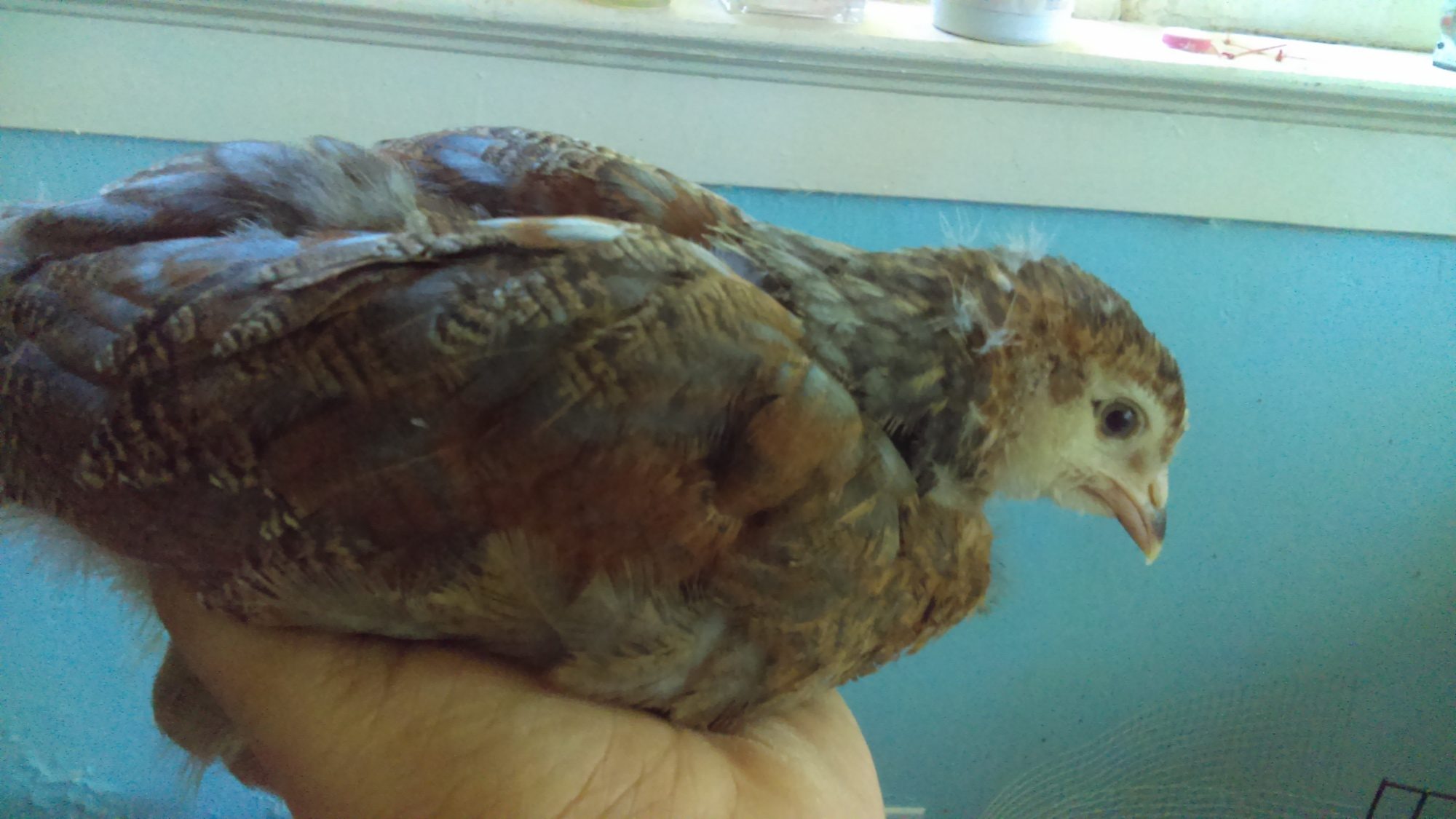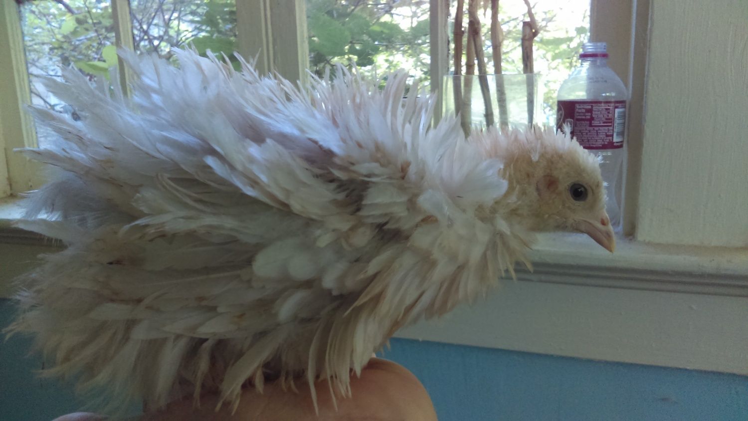 Chick 1: Maggie (we think mom was an EE as she had very fluffy cheeks as a chick)