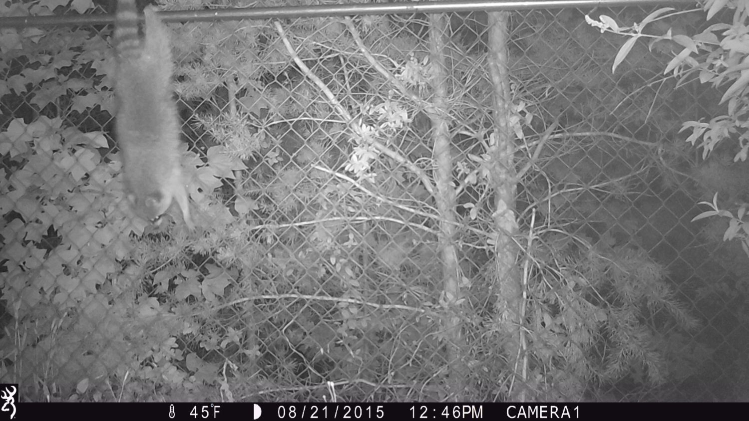 This is what I woke up to on my camera yesterday. Total of 4 or 5 came over the fence. I set me trap last night and caught one big male. I am so glad I used hardware cloth. Those things can rip the guts out of all the chickens and can get through chicken wire. We lost about 20 several years ago when a few made it through the chicken wire one night.