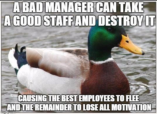 I know you don't really care for me and my opinions, even though in the midst of a previous discussion, I said you were one of the few GOOD managers that company had. It doesn't surprise me that they'd replace you, they don't LIKE good managers, who train the staff to care about the customer like you were doing.
