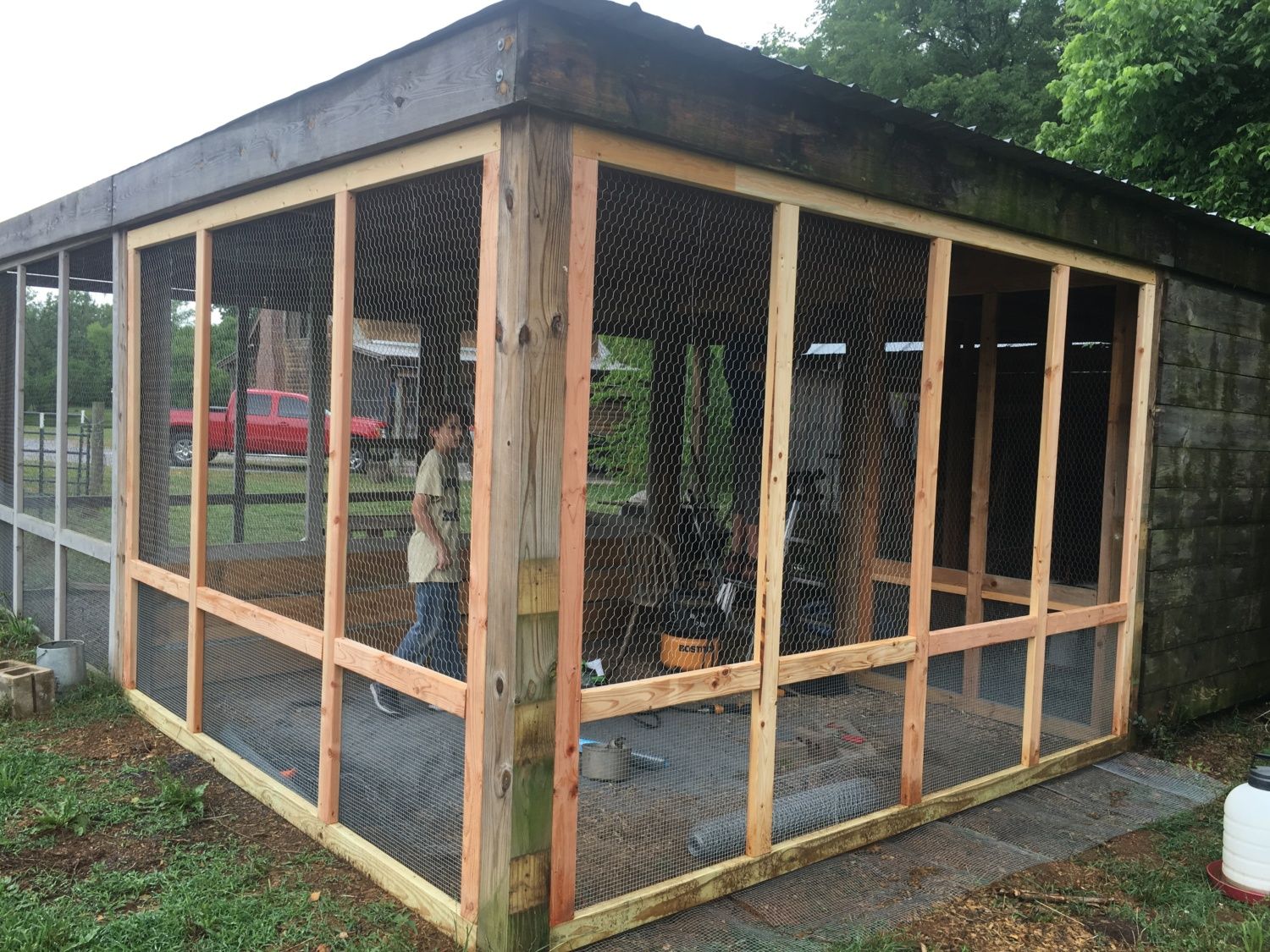 In the smaller run where I moved them from, I moved the bigger (i.e., smellier) chicks from the porch brooder.