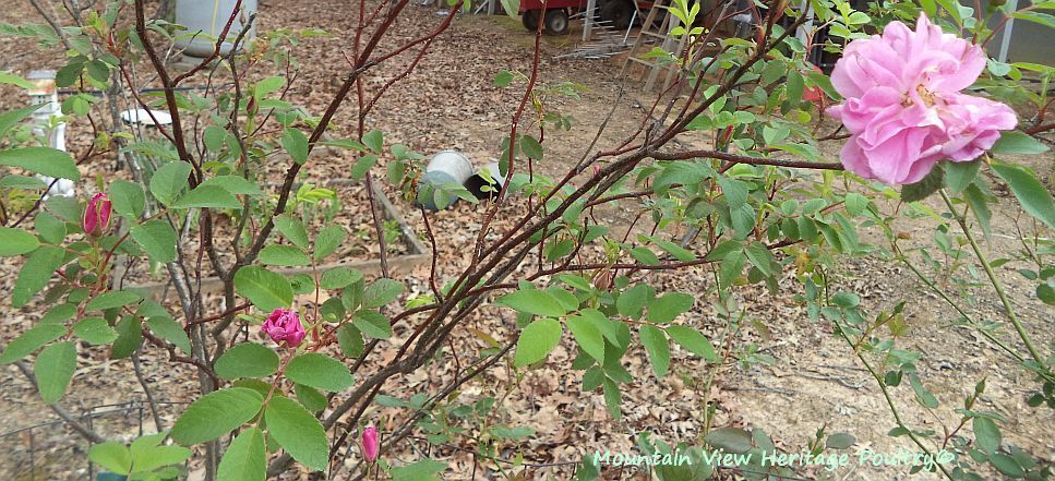 My Therese Bugnet shrub rose. Most tea roses do not grow well here, but the shrub rose does okay.