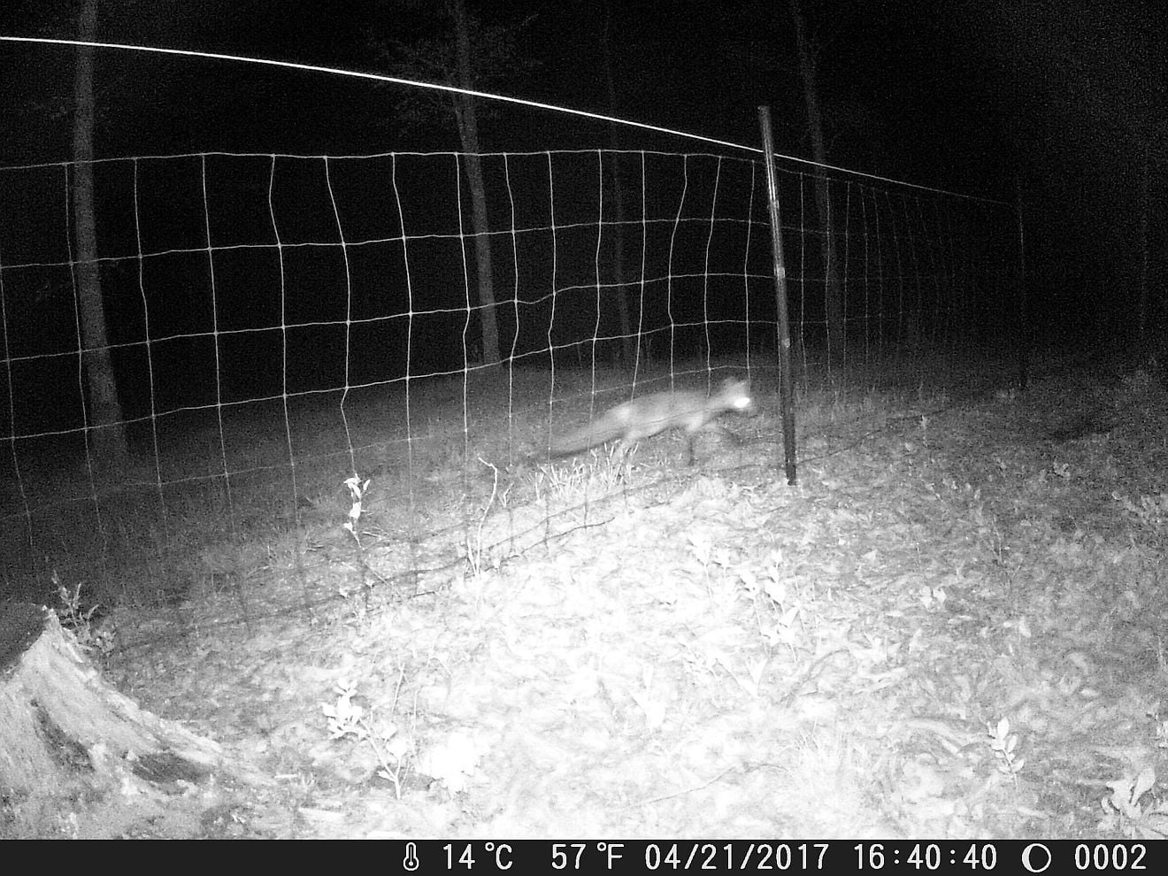 I would set the clock on the camera so you have the correct time. If he keeps showing up around the same time, I'd have to sit out there overnight and wait for him. When he showed up...... BOOM.