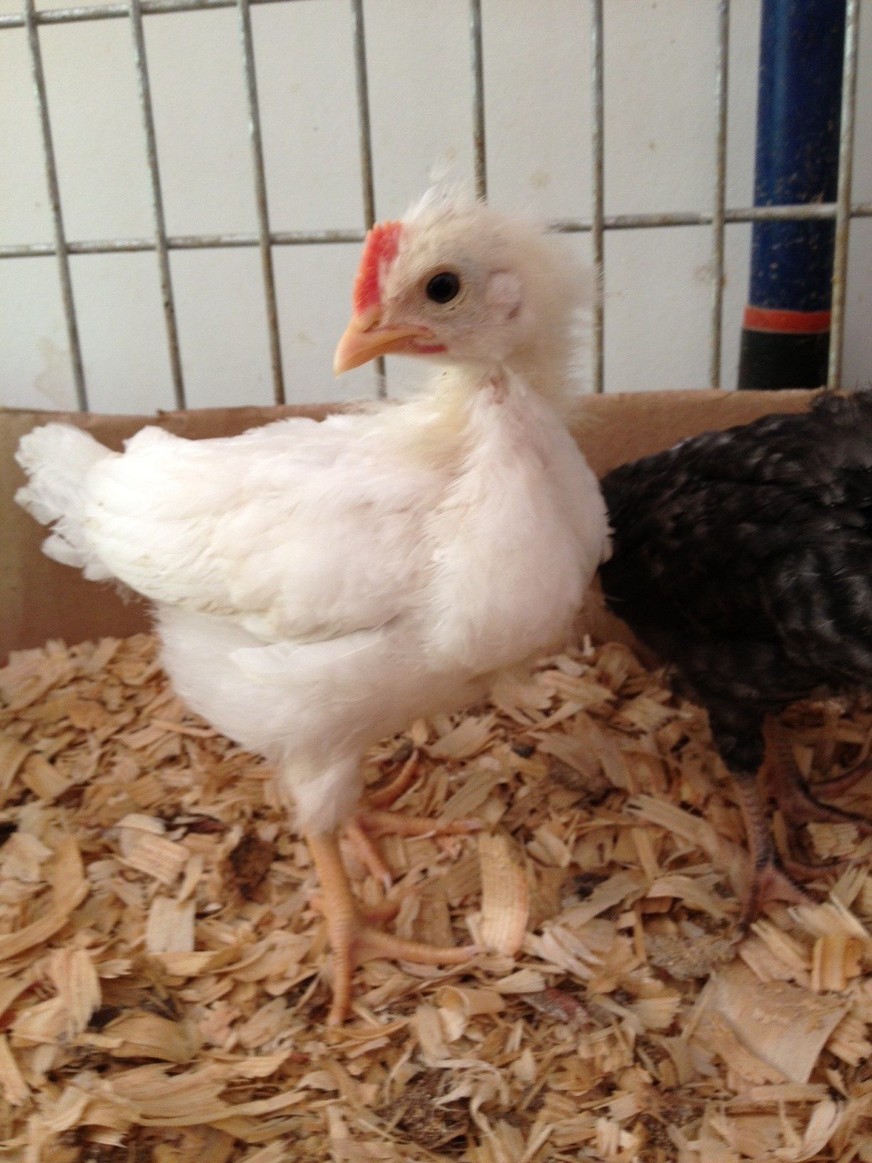 Here is the little chick that I have for sell. Crested Cream Legbar X White Leghorn roo. Will have blue egg gene. Would make fun colored egg layers! He is 5 weeks old and just starting to get a little crest like his dad!