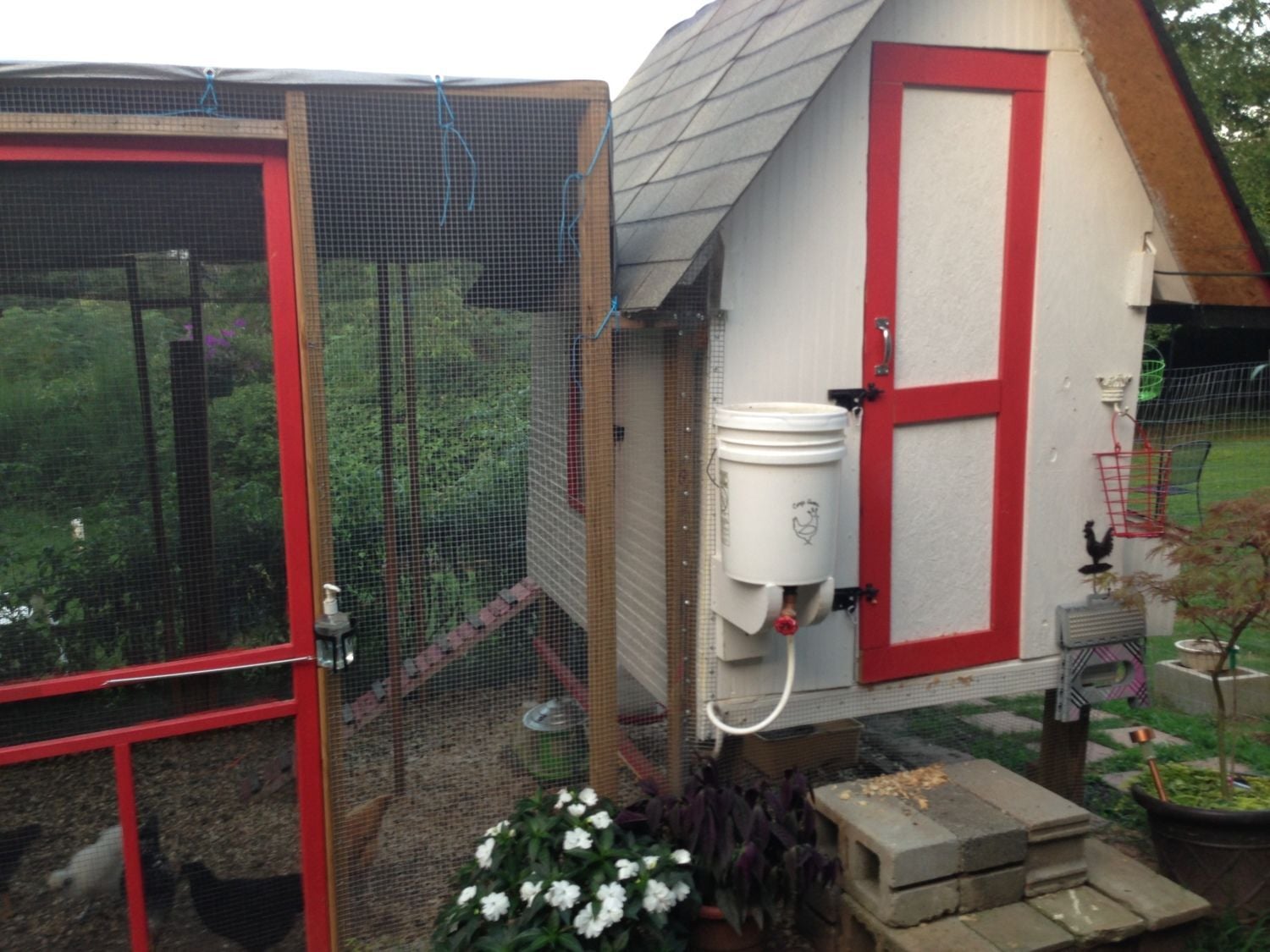I did the same type of set up. The nipples from amazon ran about $12 FOR 25 nipples. I shared with a friend. My husband fixed the five gallon bucket with a toilet thingy in it and connected water to it. It automatically fills up as needed. No need to fill buckets or clean poopy waterers. You can google instuctions. rs. Love it