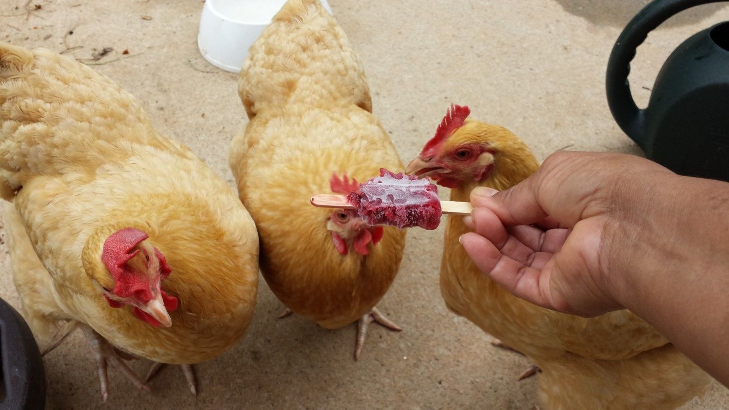 Chicken Little has moved to her own little coop and run. I still have one of her sisters in there with her to keep her company. She is learning to use a ramp to get up and down from the coop! That is going great. She is so happy in her new location and I am able to interact with her more because she is close to the water station and I am there a lot! These chickens, all 60 of them drink a lot of water in the summer![]()