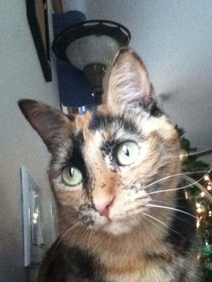 This is Athena. She is a calico American Shorthair. She's 11 years old now and getting to be a bit of an old lady. We brought her home as a tiny kitten when my husband and I were engaged.